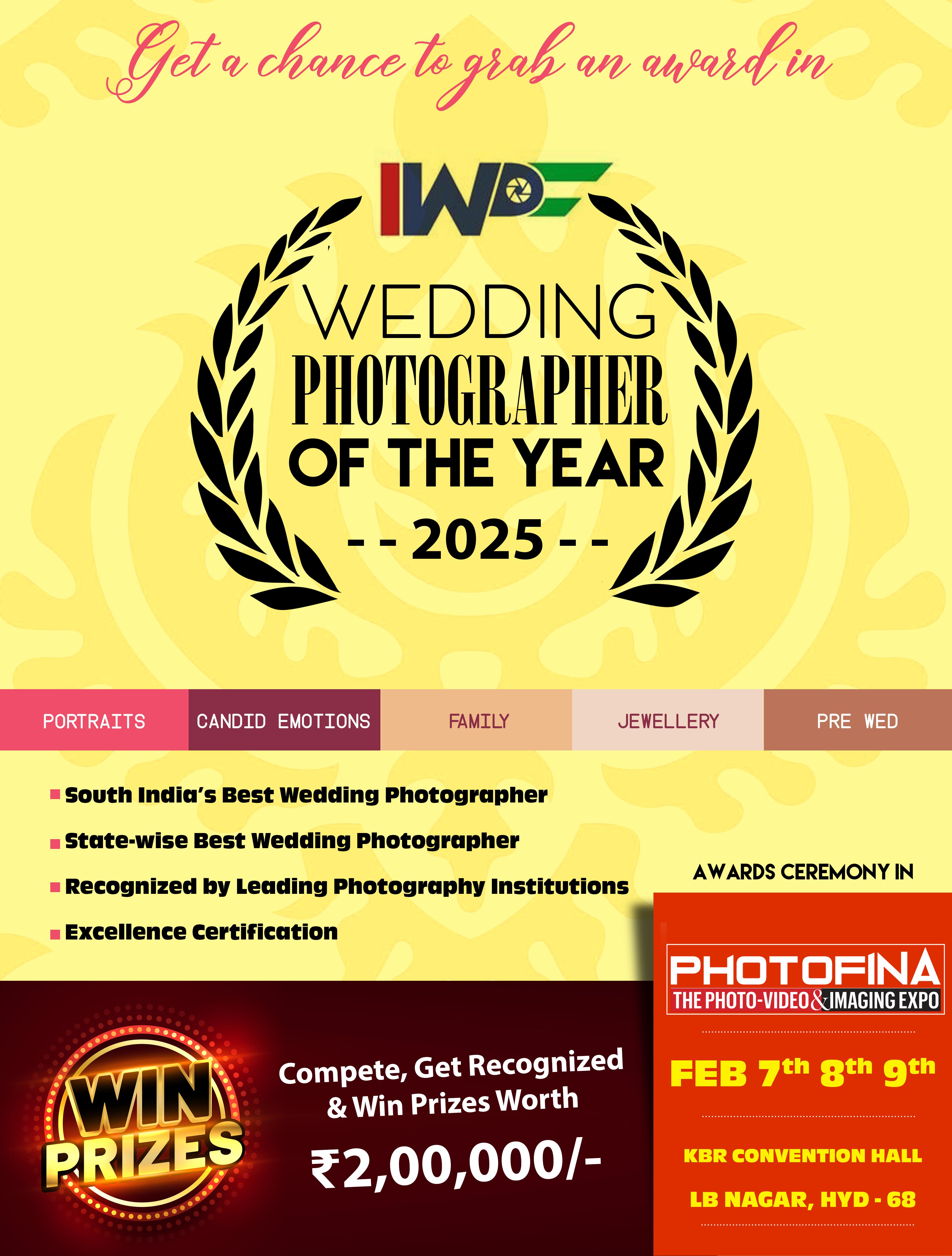 State-wise Best Wedding Photographer Certificates will also be awarded